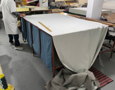 Dans un marché dominé par le mobilier standardisé, nous avons choisi une autre voie. Celle de la création sur mesure, de la réflexion fonctionnelle et de la collaboration avec un atelier de tapisserie artisanale marocain, où chaque pièce est fabriquée à la main avec exigence et passion.